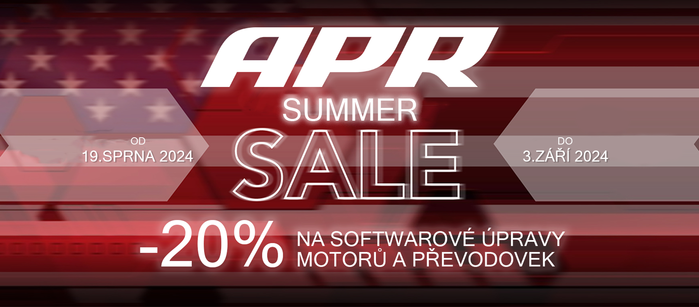 APR summer SALE! Využijte letní slevy a získejte -20% na softwarové úpravy motorů a převodovek! Zvyšte výkon svého vozu za výhodnější cenu během naší speciální akce. Nezmeškejte tuto příležitost a připravte svůj vůz na maximální výkon s podporou APR! Platí pouze po omezenou dobu.